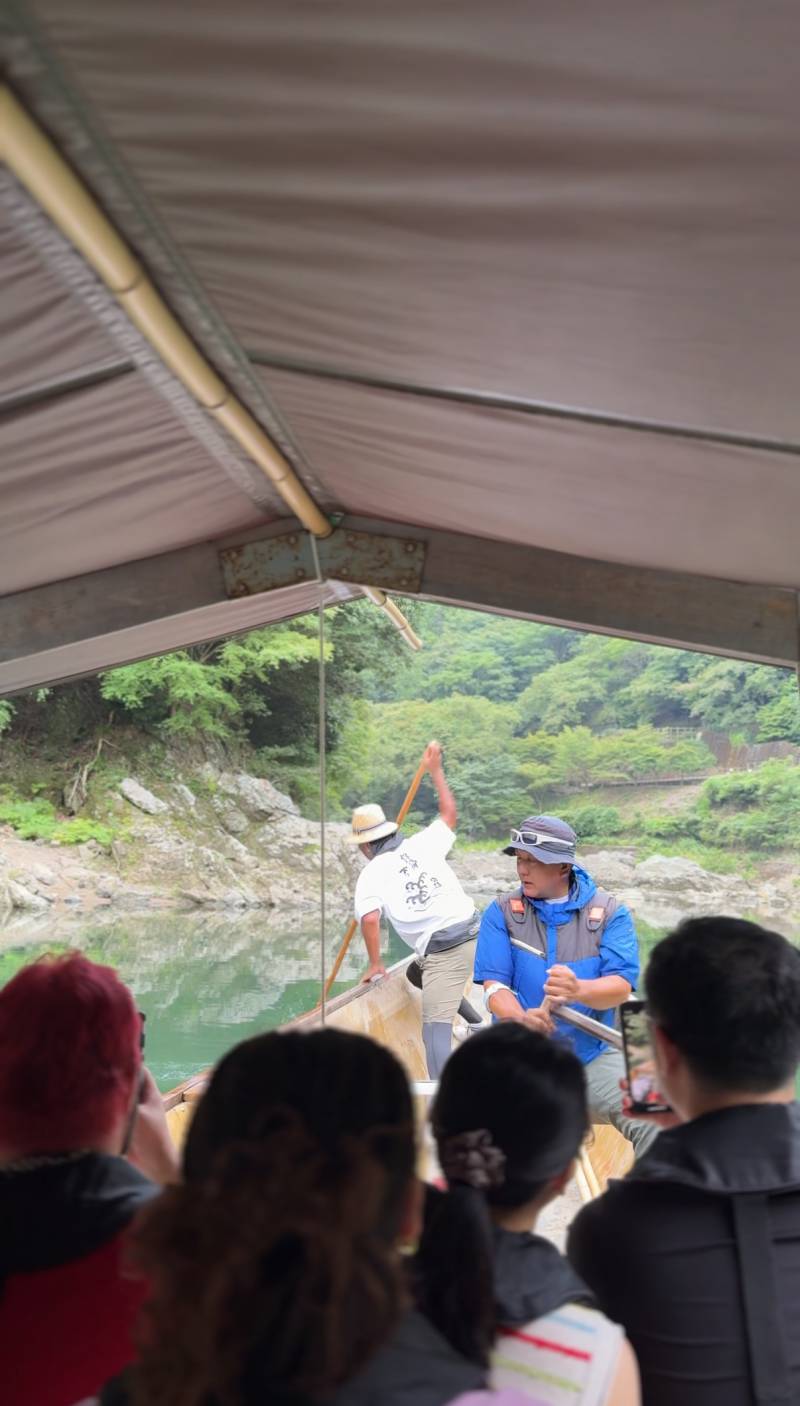 The boat captain was telling about a funny story and the story about the Hozugawa River