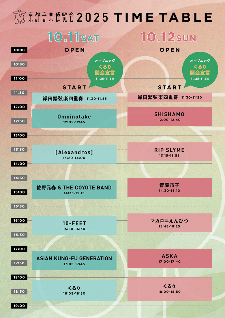 Quruli, ASIAN KUNG-FU GENERATION, [Alexandros], 10-FEET, and others