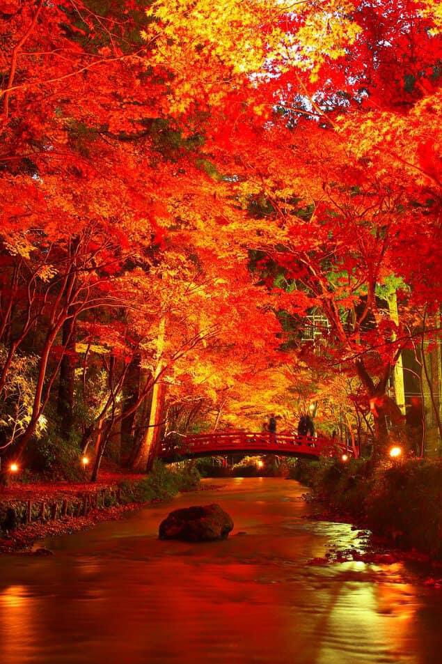 - 出町柳から鞍馬を結ぶ叡山電鉄では、ライトアップされた紅葉の回廊を走る名物列車がある。写真は、貴船口の駅にて。